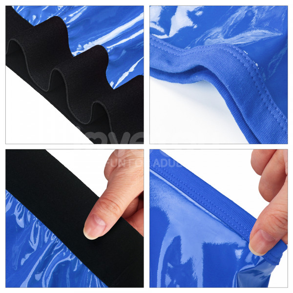 Трусики выполнены в синем цвете с желтыми полосками по бокам из винила. Провокационный блеск винила придает особенную пикантность образу! Молния спереди создает завесу тайны и скрывает истинное предназначение трусиков. Под молнией скрывается кольцо, к которому крепятся любые фаллоимитаторы и вибраторы.  Плотное кольцо гарантирует идеальную фиксацию фаллоса