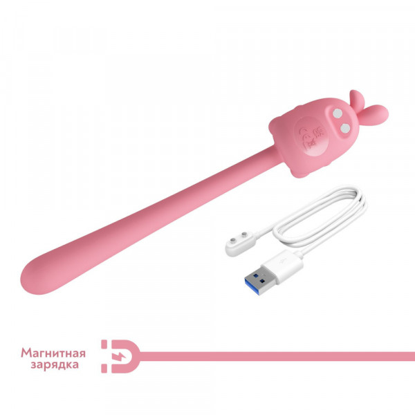 Форма девайса в виде гибкой палочки с увеличенной округлой головкой, в основании которой находится милый зайка позволяет использовать его как вибратор для клитора, массажер для G-зоны, анальный стимулятор, массажер простаты, и даже как зонд для уретральной мастурбации! Детализированный зайка также идеален для внешней стимуляции всех эрогенных зон!